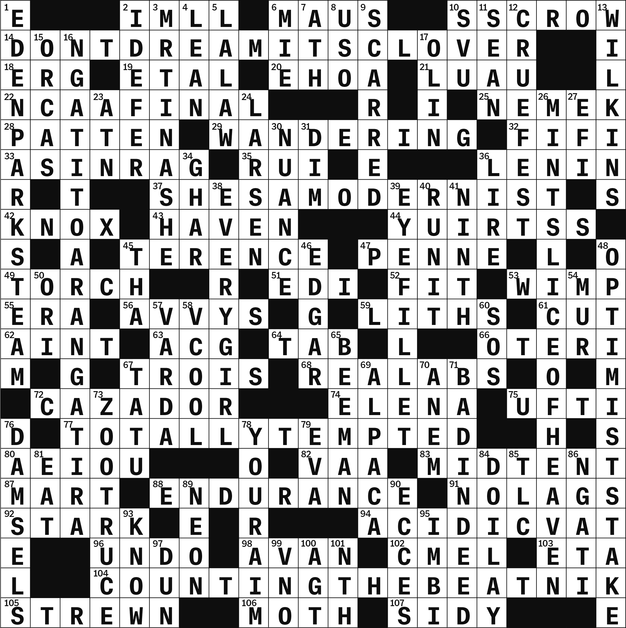 If you’re ready to confirm your answers (or have simply given up at this point), click here to reveal the full crossword grid.